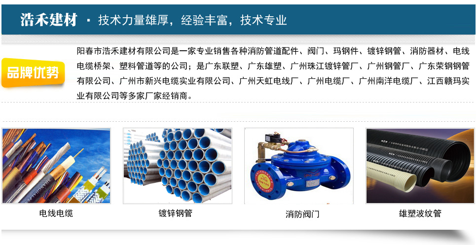 公司主要業(yè)務:HDPE雙壁波紋管,電線電纜,鍍鋅線管線槽,配電箱,防水材料,歡迎撥打咨詢熱線:13829839868